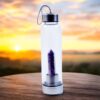 Elevate your daily hydration routine with the Amethyst Tower Bottle, a beautifully crafted water bottle featuring a stunning amethyst crystal tower at its core. Amethyst is revered for its ability to promote calmness, clarity, and balance. This bottle combines the benefits of amethyst with practical hydration, making it an ideal companion for your wellness journey.
