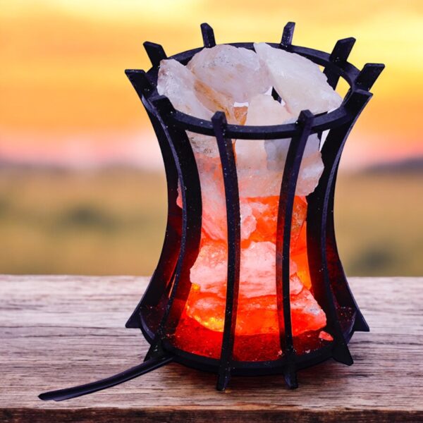 Experience the calming effects and natural beauty of the Himalayan Rock Salt Electric Metal Basket Lamp. Order now to enhance your space with its soothing glow and air-purifying benefits.